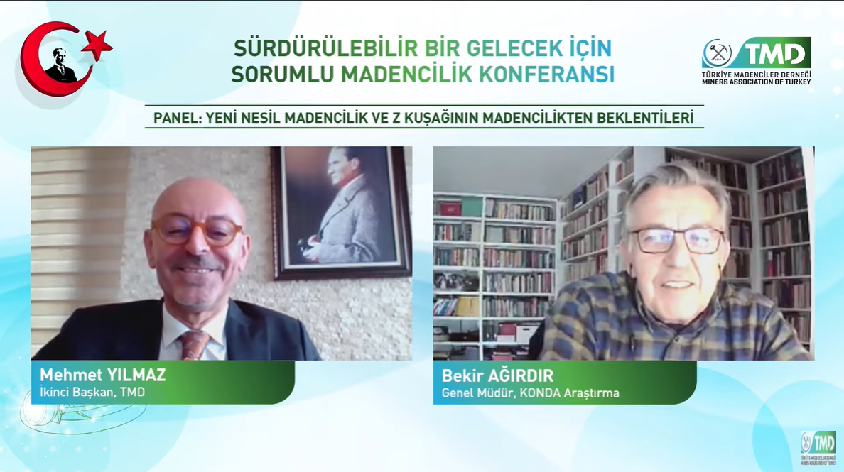 Konferansta, “Yeni Nesil Madencilik ve Z Kuşağının Madencilikten Beklentileri” paneline katılan KONDA Araştırma Genel Müdürü Bekir Ağırdır, gençlerle anlamlı ilişkiler geliştirebilme ile ilgili, “Bugün, karşımızda eskisinden çok daha farklı bir kuşak var. Elbette coğrafi şartlar, yaşantılar, beklentiler gibi farklı durumların madenciliğe bakış açısında önemli rolü bulunuyor. Giyim-kuşam, yeme-içme gibi hemen hemen en basit eylemlerin dahi değiştiği bir dünyadayız. Ekonomik aktörler ile dinamikleri göz önünde bulundurarak gençleri iyi dinleyip anlamak ve temas noktasında karşılıklı iletişim kanallarını açık tutmak gerekiyor” şeklinde konuştu. Ağırdır ayrıca, “Ülkemizin geleceği için hep birlikte sorumluluk almak ve ortak paydada buluşup, ‘biz’ olmayı başarmak bu anlamda çok önemli” diye sözlerine ekledi.